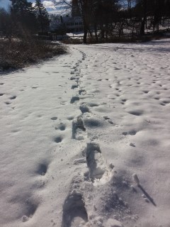 | My fresh snowshoe tracks! |
